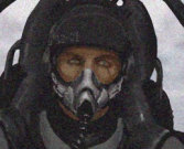 左目の上を走る傷跡は大規模な作戦中(2003年中東)に負ったものとされる。